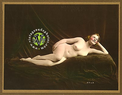 Fabulous nude reclining on draped fabric. Lightly mounted on double mat. Image measures 6.875" x 9.25" EXCELLENT condition. SOLD |